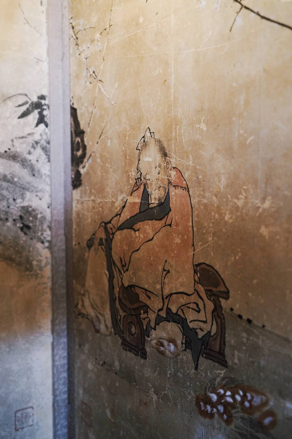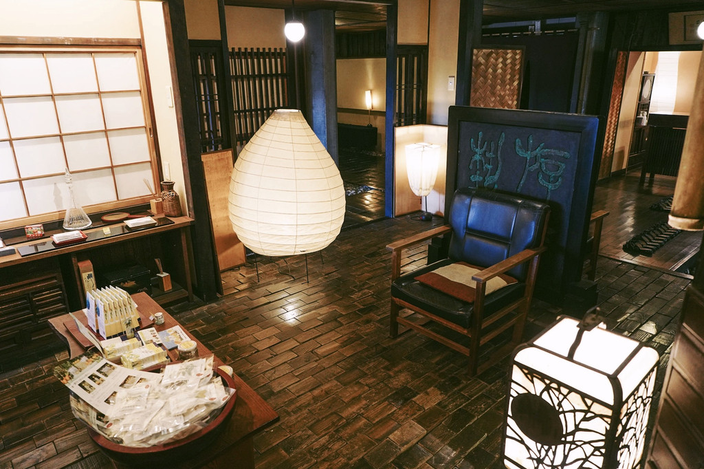 玄关处的前台上方挂了一副亭主写的书法“怡然有余乐”,旁边是一个和纸灯笼区域,古典氛围被瞬间拉满。