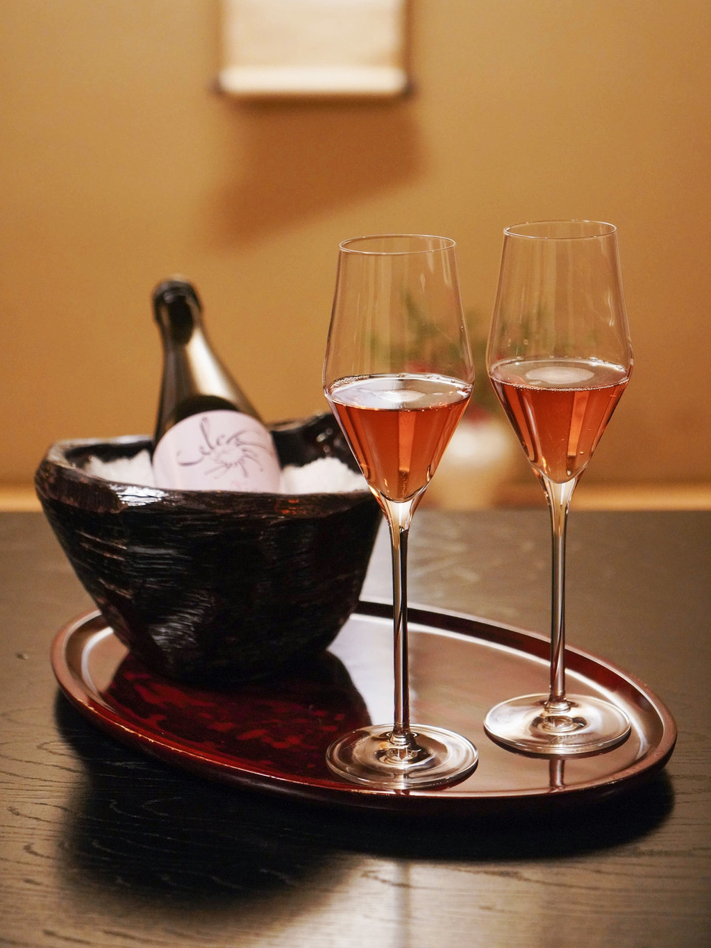 第二天的餐前酒是很适合女生的玫瑰气泡酒。
