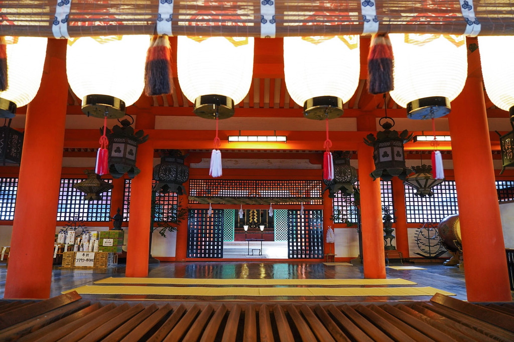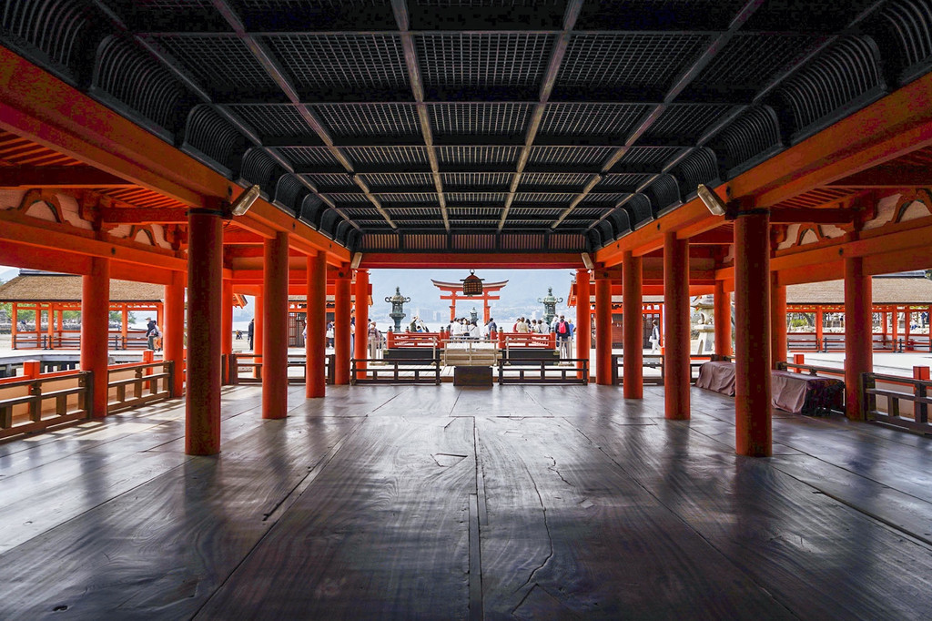 严岛神社建于公元593年,曾多次修缮,古时被尊奉为“海上守护神”,可以祈求“交通安全”及“消除水难”,也可以保佑学业顺利等。现在的建筑是公元1241 年再建的,为平安末期式样。神杜内有正殿、币殿、拜殿、拔殿、高舞台、平舞台等,由长273 米的红色回廊连接。