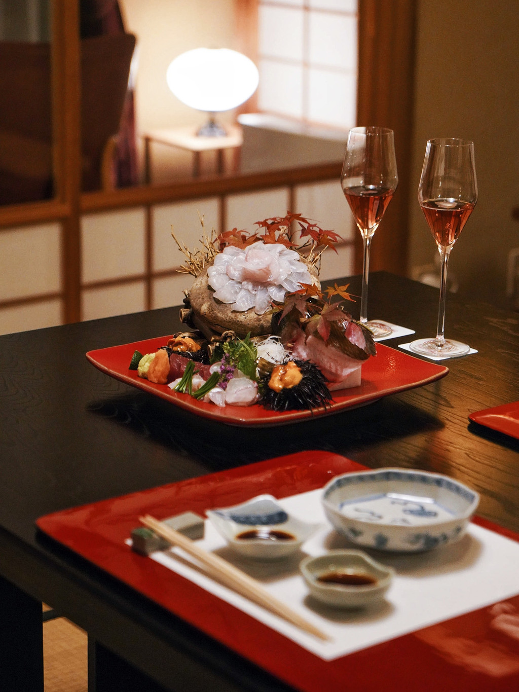 我们在石亭住了两晚,第二晚的怀石料理居然比第一天的还要惊艳,入住 3 或 4 晚的客人,旅馆会根据客人的需求进行混合搭配,在石亭也可以吃到寿司、天妇罗、铁板烧等,因为大多数欧美客人都会住好几天的。