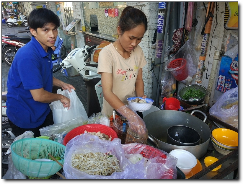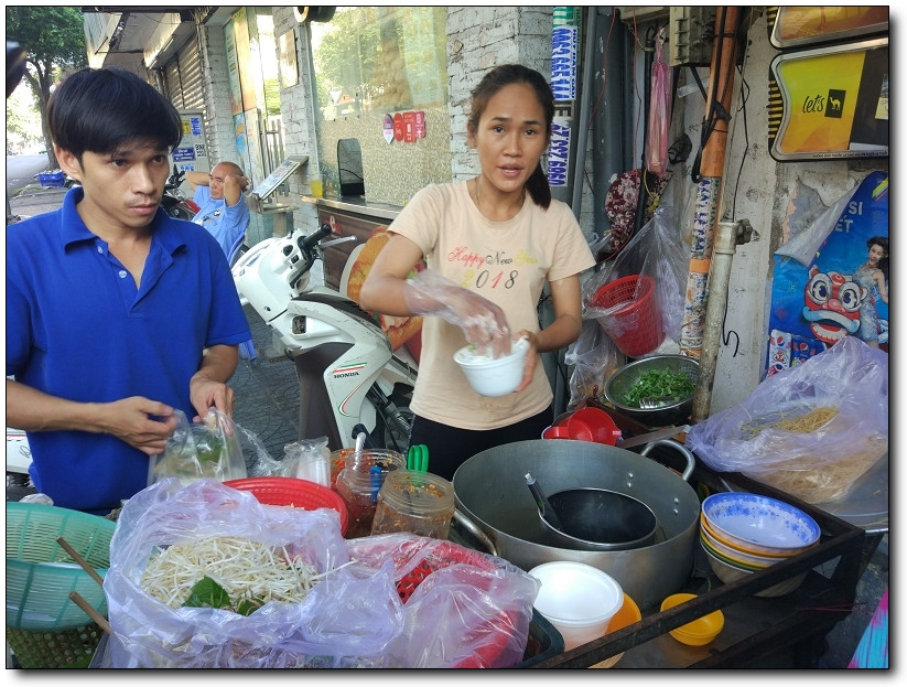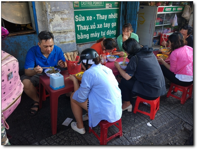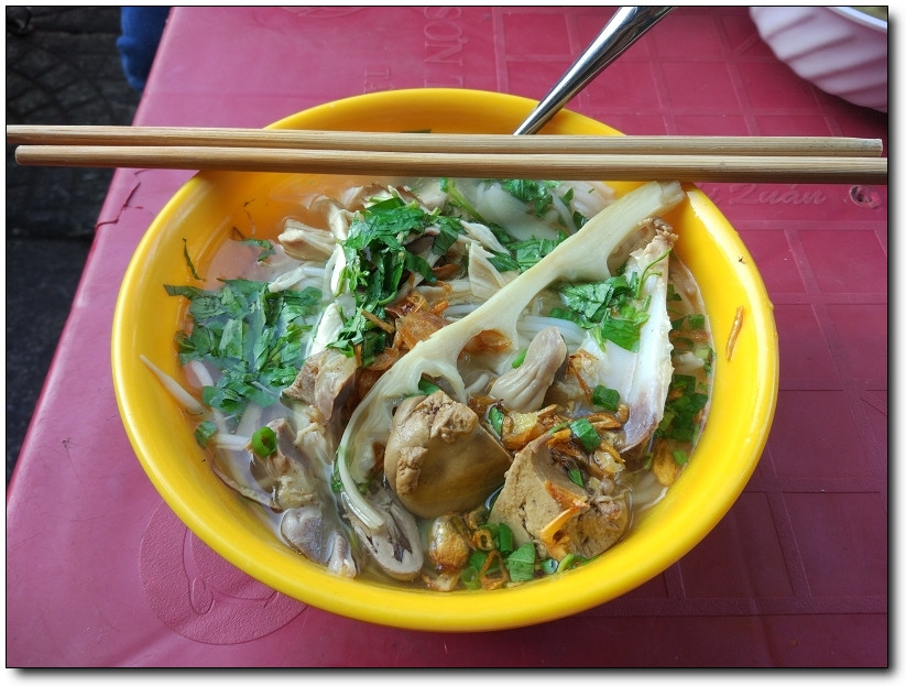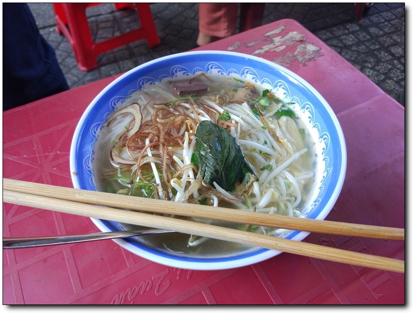 路边摊是越南美食的特色,一定要尝尝,先来碗越南米粉,5000越南盾一碗(啊!还不到2元),碗够大,量不多,一碗不够饱的,不过无所谓,还可以尝尝别的。
