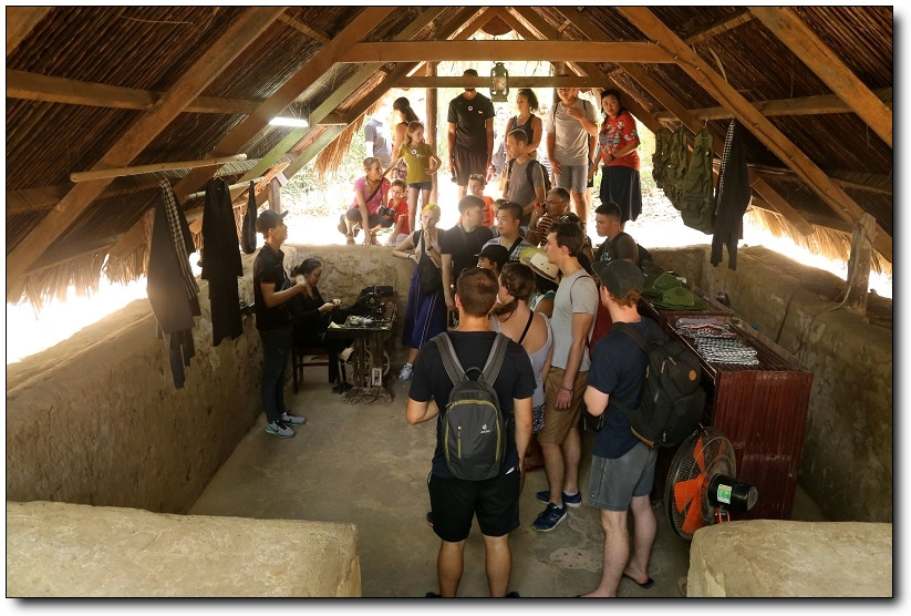 游过全部景点后,有一段地道供游客亲身体验,长约100米,当然就是三层地道中的首层,游客需弯着身子走。