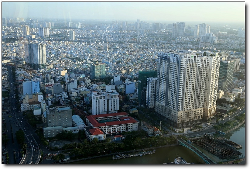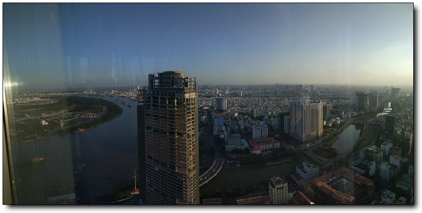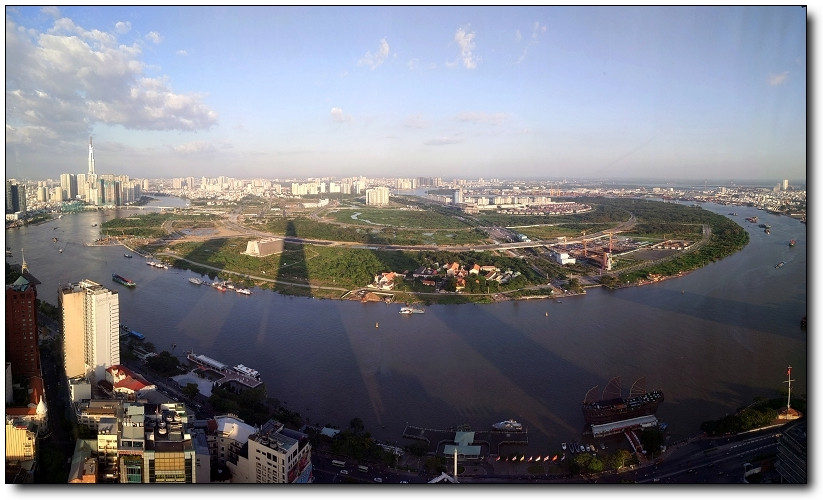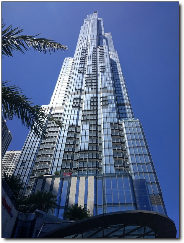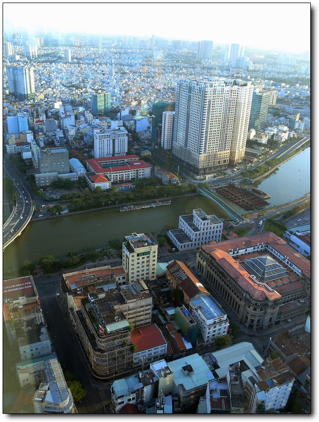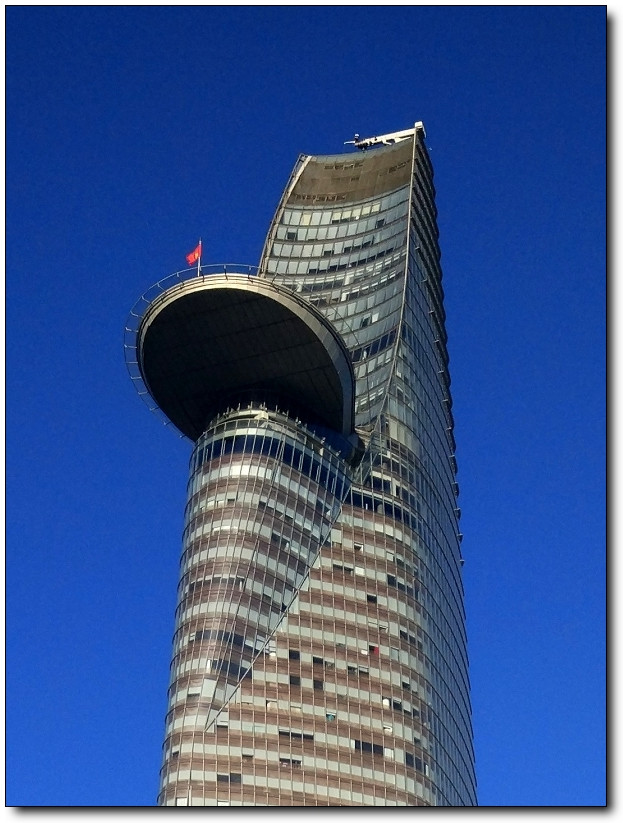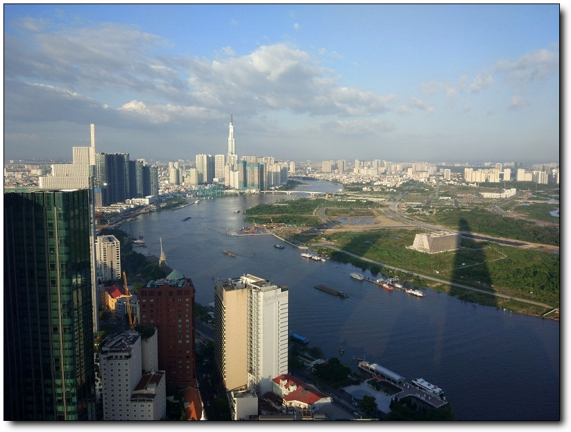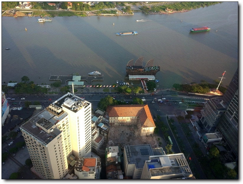 昨天去过的西贡观景台,白天看更清楚,飘台下是观景台,飘台那层是酒吧所在的52层,飘台实际上是直升机坪台。