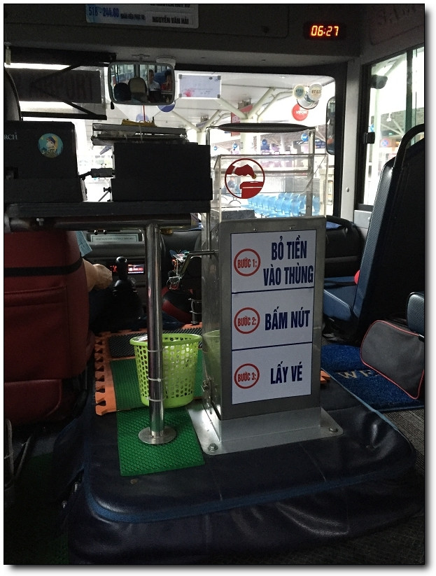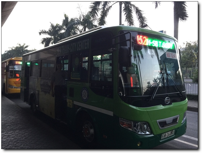 换了些越南盾,乘坐152路公交车入市区,车费5000越南盾/人,行李每件按一个人算,也很便宜了,早上不堵车,很快就到市区。