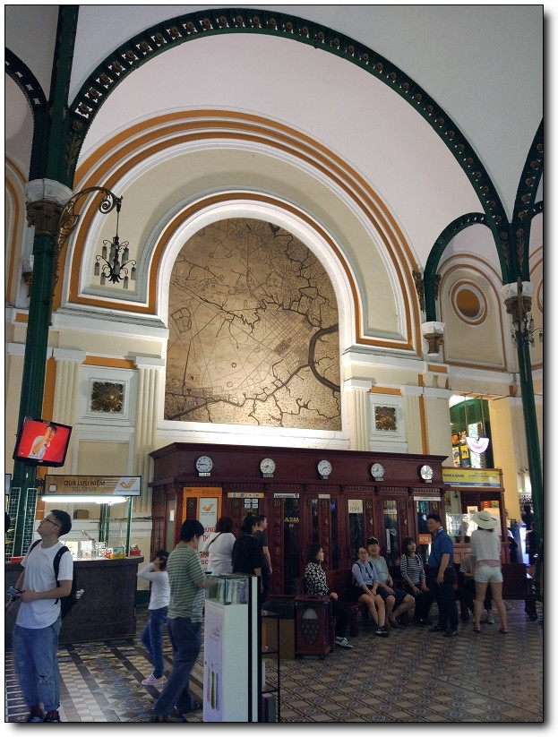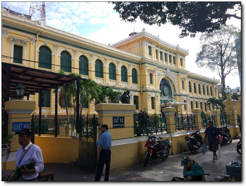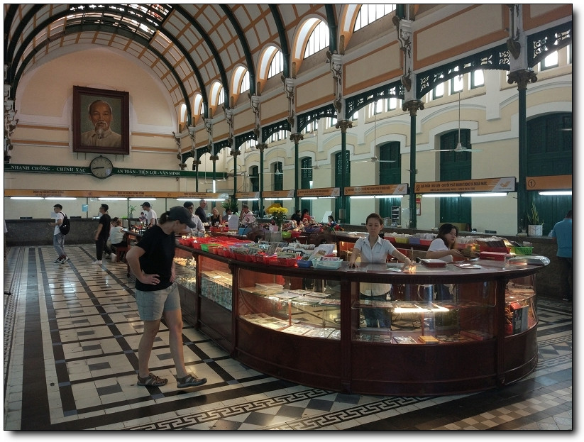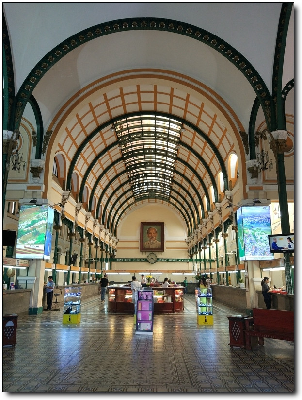 中央邮局就在西贡圣母大教堂的旁边,这是胡志明市法殖民时期遗留下的邮局,建于19世纪末,由法国建筑师古斯塔夫·埃菲尔(Gustave Eiffel)设计,充满了浓浓的法式风情。