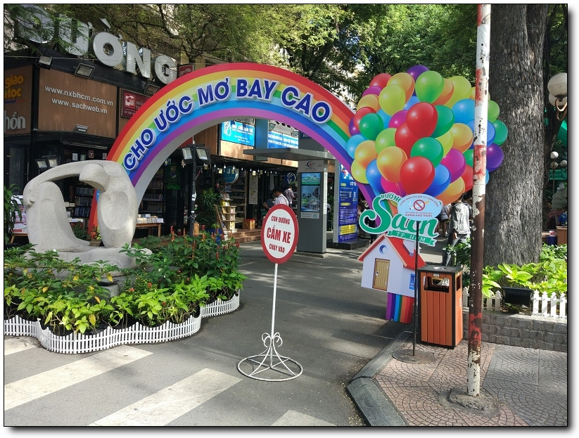 紧挨着中央邮局,有一条图书街,就在阮文平路上。阮文平书街是胡志明第一条书街,建于2016年。