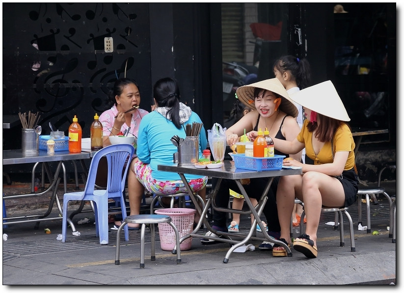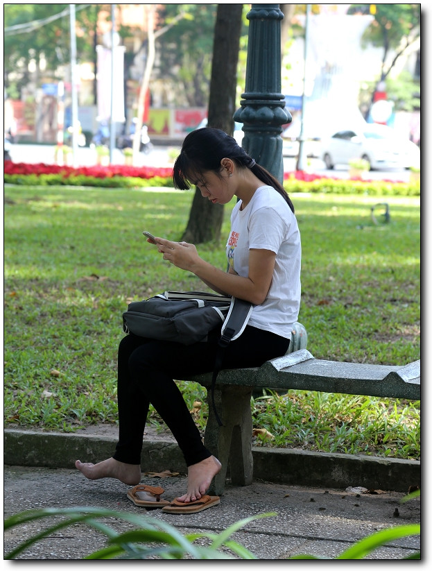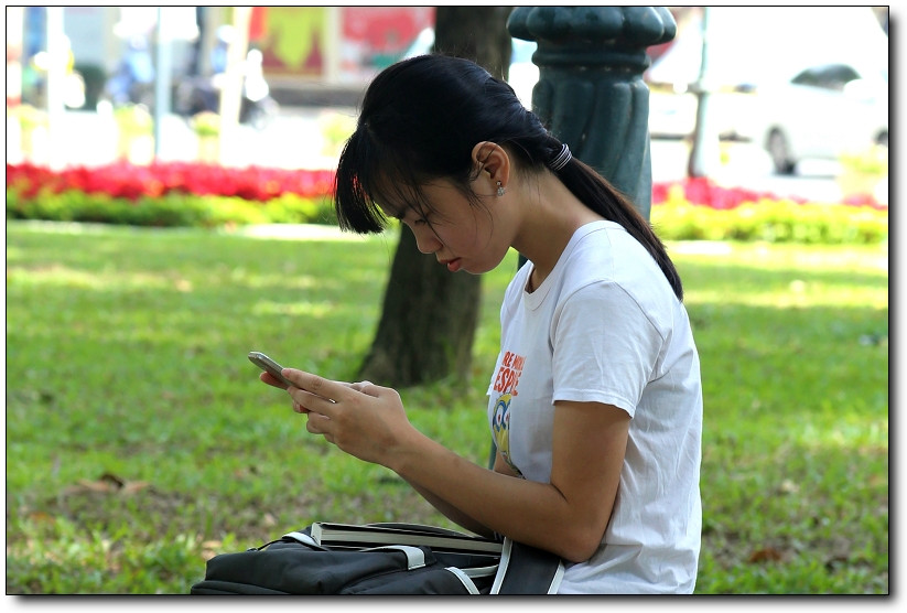 无意中看到对面石凳这个越南妹子,她专注的神态被我拍下来了。