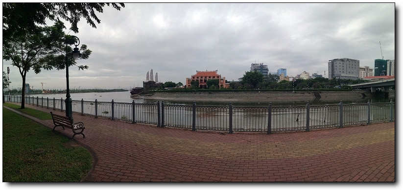 码头对面的小广场上,耸立着越南商业银行大楼,很宏伟、很有气势。