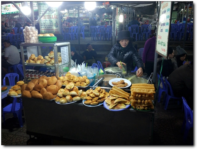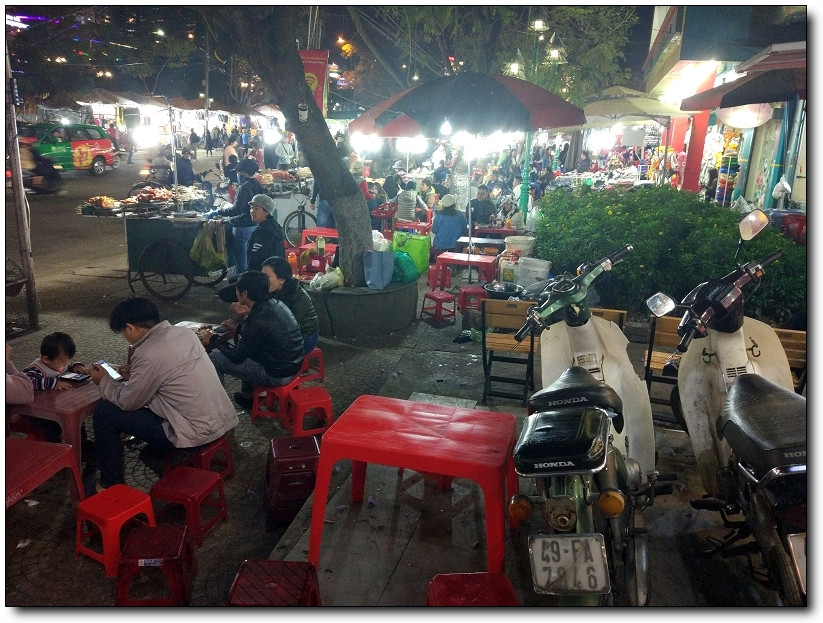 饥肠辘辘,到酒店安顿好后马上来到大叻夜市觅食。对了,大叻海拔较高,早晚会比较冷,要注意保暖,我都穿上薄羽绒服了,是不是很夸张。