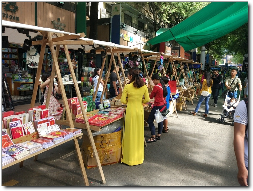 短短100多米的一条街,完美表达了越南政府倡导的“绿、净、美”新城市概念,两排书店对立铺开,书刊摆的整齐干净。