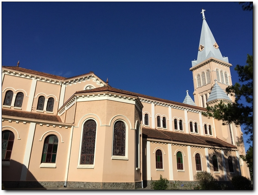 大叻天主教堂始建于1931年,从外观上看起来像一个欧洲中世纪大教堂,是这座城市的地标建筑之一,这座欧洲哥特式建筑拥有引人注目的尖顶钟楼。
