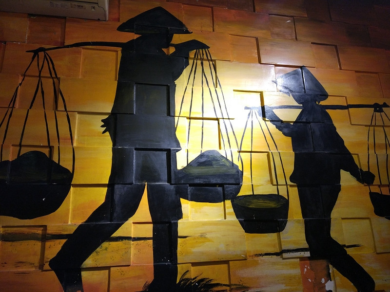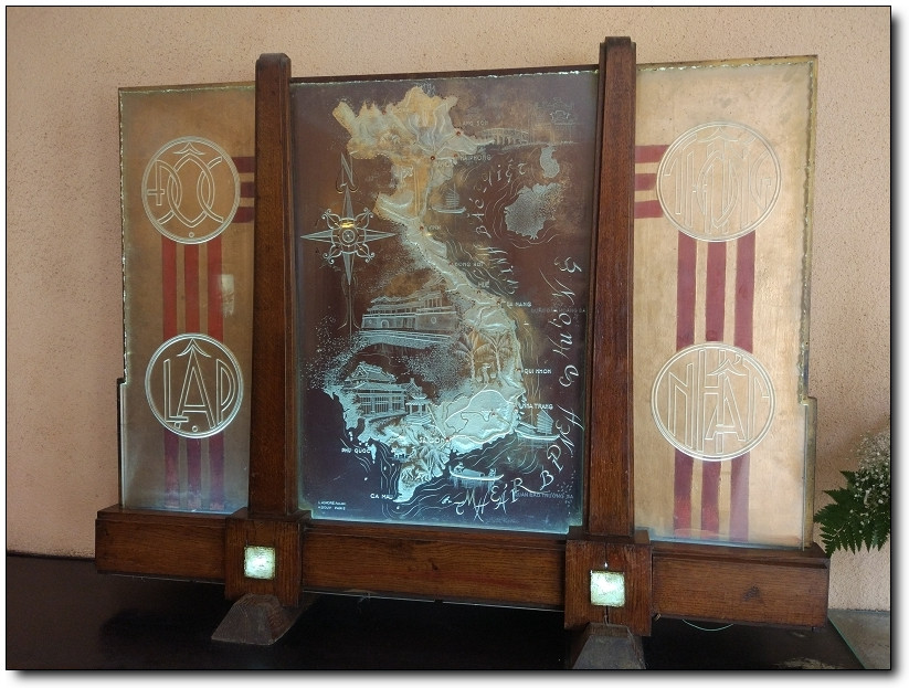 两旁的墙壁上则是越南的旧地图,旧地图下设有特色电话亭。