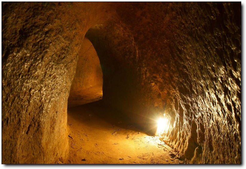 古芝地道全长250公里,由无数条宽不到80公分的地道分为三层结构交错而成,第三层深达8米。每一层都设有空气孔不着迹地伸向地面,地道内有水井、粮仓、会议室、宿舍,如同一座大军营。首层必须以半蹲的方式行走,第二层可能得跪着前进,第三层甚至需要匍匐前进。