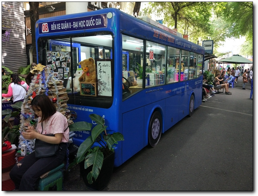 一辆长6米、宽1.5米,上面装满书籍的巴士刚首次亮相胡志明市图书街,为读者带来崭新的阅读体验。这辆巴士犹如一个迷你图书馆。车上设有座位并为读者提供免费WIFI服务。