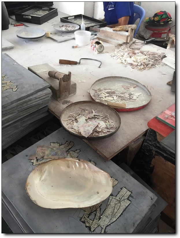 材料很普通,鸡蛋壳、蚌壳等,经加工后,栩栩如生的作品就呈现出来了,叹为观止。