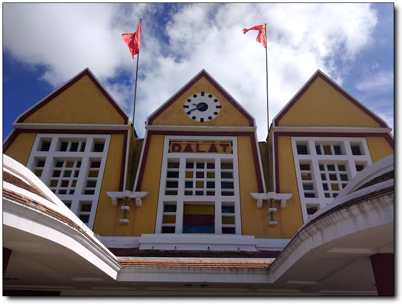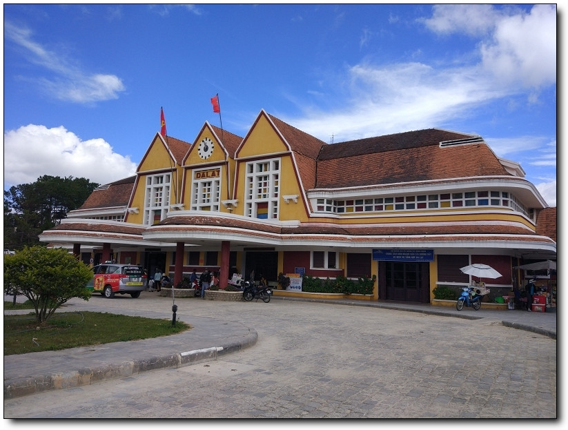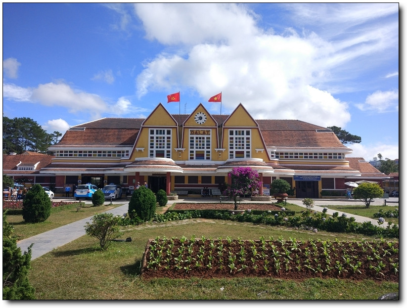 大叻窄轨火车站是当年法国人修建的窄轨铁路,1928年—1964年成为连接大叻和塔占的主要通道,此后由于战争而长期遭废弃,直到1990年代才恢复了通往附近村庄的旅游线路。目前大叻窄轨火车站对外开放,主色调是抢眼的橘红色,三个尖尖的屋顶和彩色玻璃彰显着古老的异国风情。