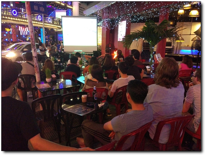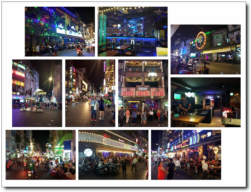 下午飞回胡志明市,还是晚点一个小时,还好,酒店订在范五老街,机场有109路公交车(车况比152路好,20K越南盾/人,不用另外收行李费)去范五老街,放下行李马上去酒吧街。