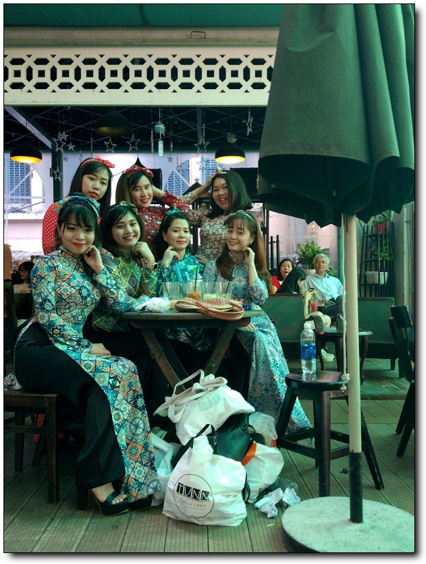 看!这几位MM显然有备而来,套上奥黛,美美地留下青春的印记,见证书街三周年的成长。