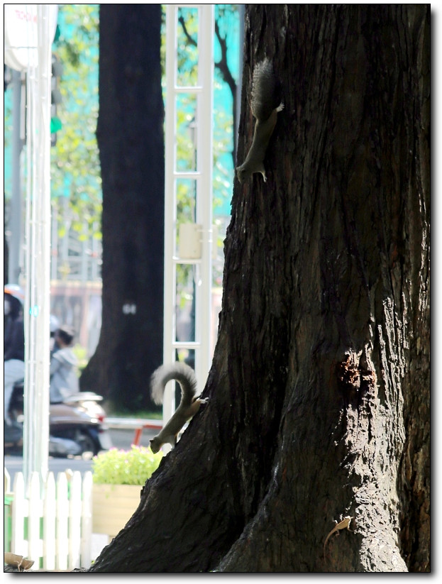 公园的环境真好,居然看到两只松鼠在追逐、玩耍、觅食。