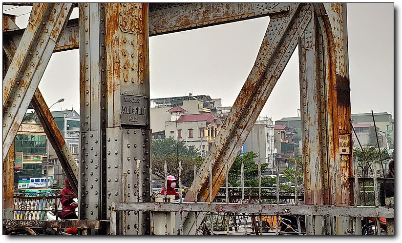 还剑郡一侧的桥上有一面醒目的铁牌,上面写着“1899-1902:戴德与皮勒”(Daydé & Pillé)。铁牌上的两个数字指龙编桥的动工和完工年份, “戴德与皮勒”是中标承建这座历史的铁桥的一家法国建筑公司。