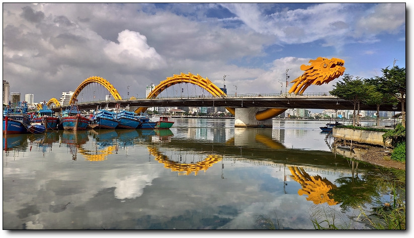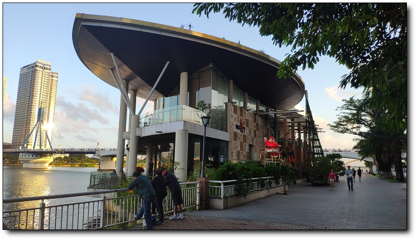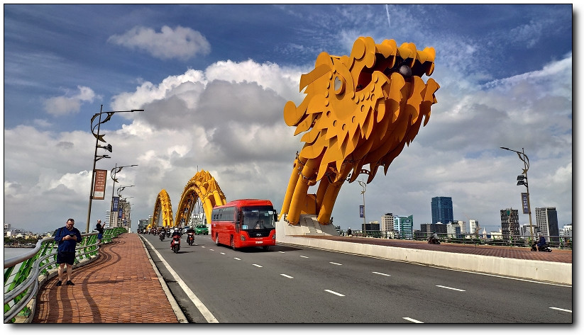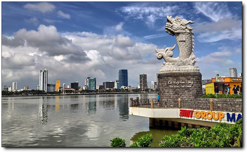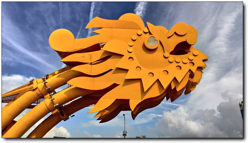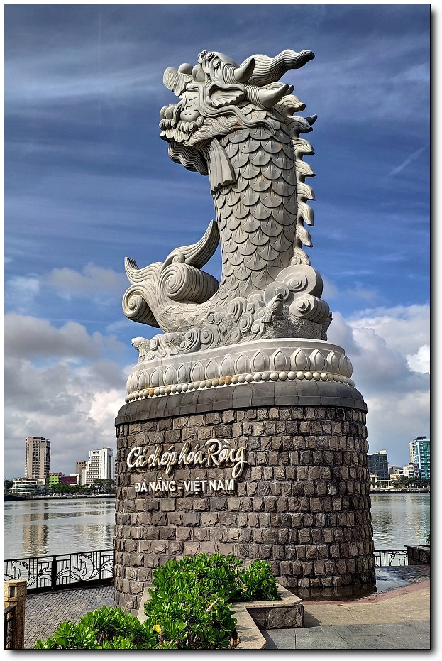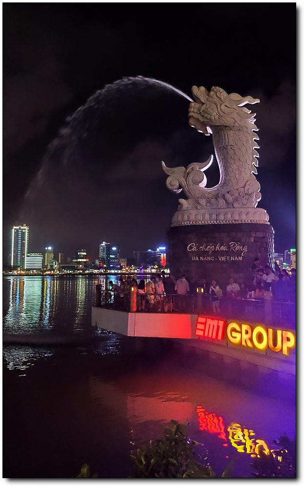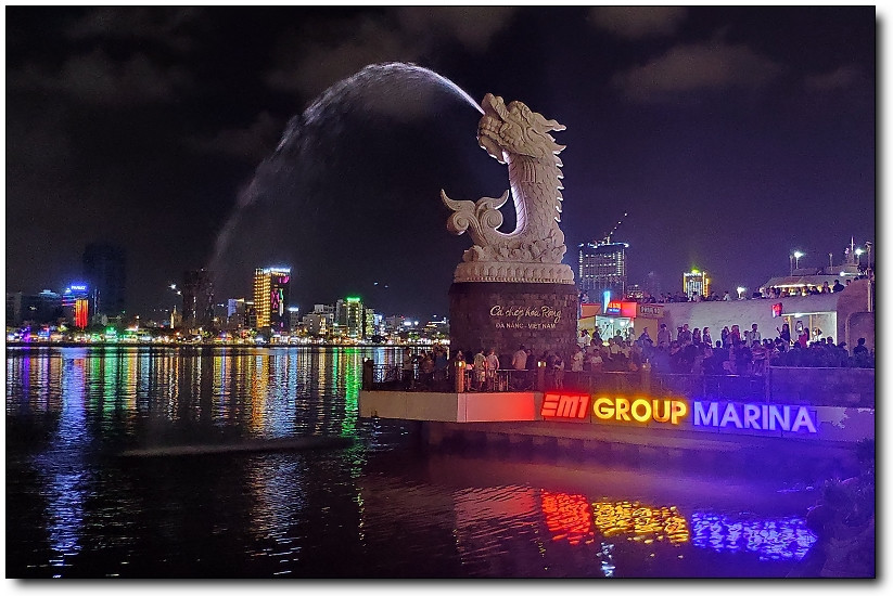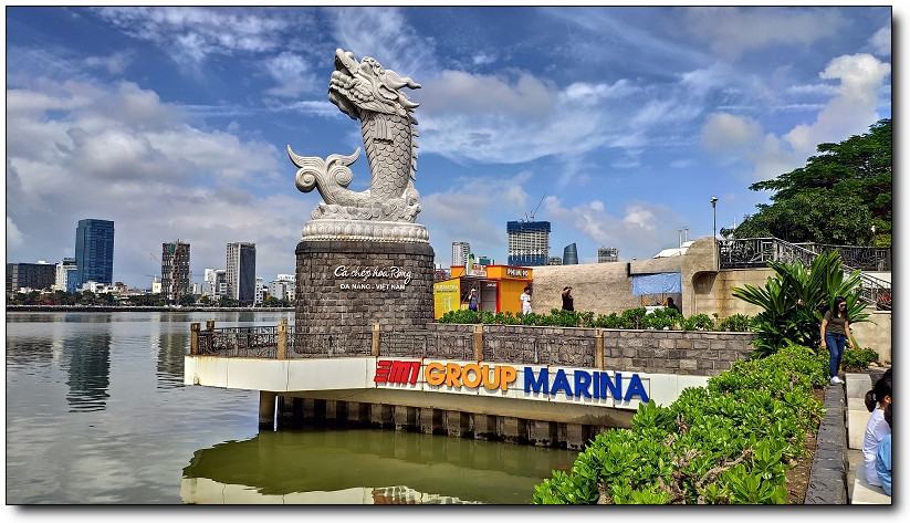 龙桥旁边有座 DHC Marina 雕像,酷似新加坡的鱼尾狮,其实它是龙身鱼尾像,龙嘴可以喷水,算是岘港的新地标。