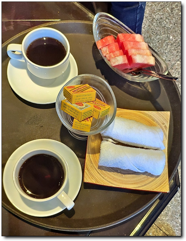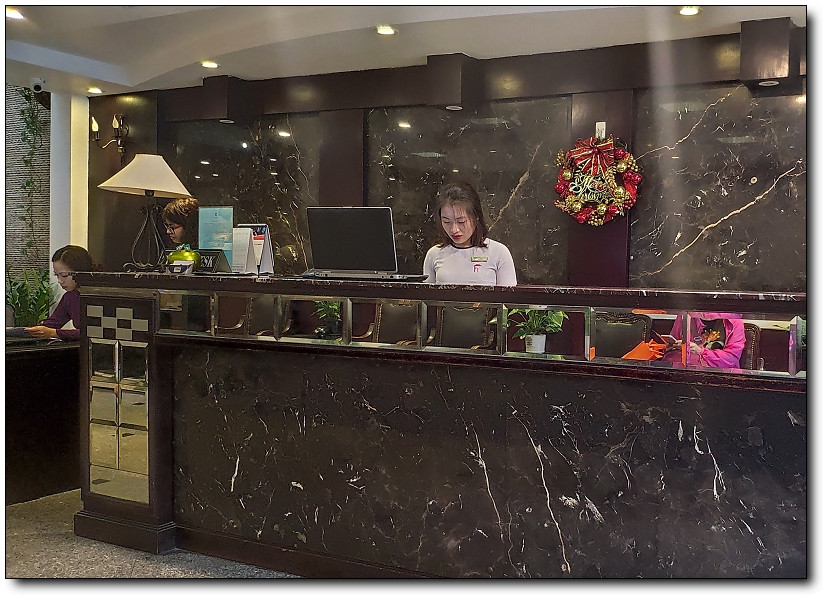 原来她并非酒店的正式员工,她还在读大二,酒店管理专业,学校放假了,来实习做兼职(估计也是有关系进来的,吧台的工作并不辛苦),这几天多亏她帮忙,在酒店给的旅游地图上标注出重要景点信息及特色美食信息,让我们得以顺利品尝到正宗的越南美食,真心多谢她。