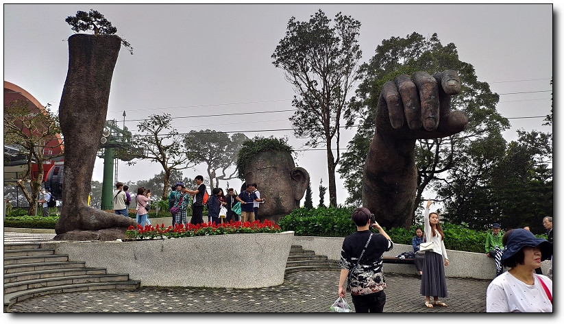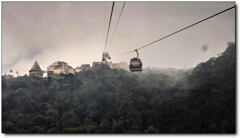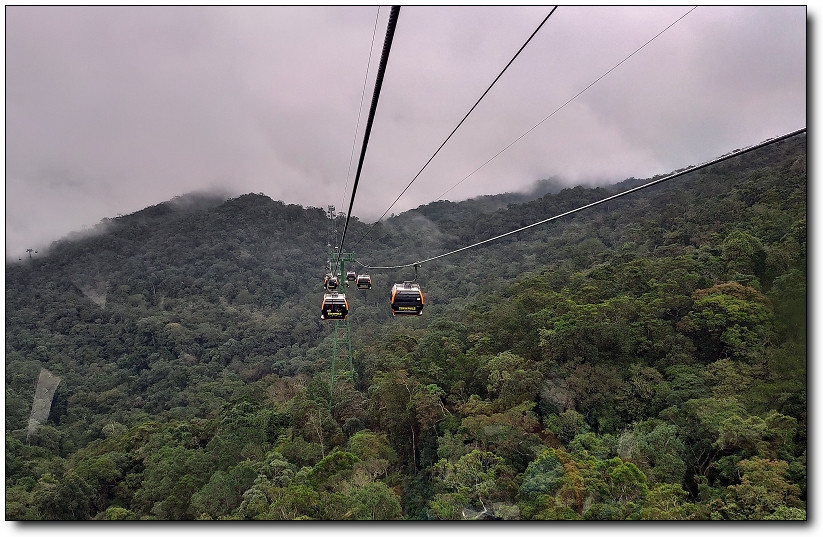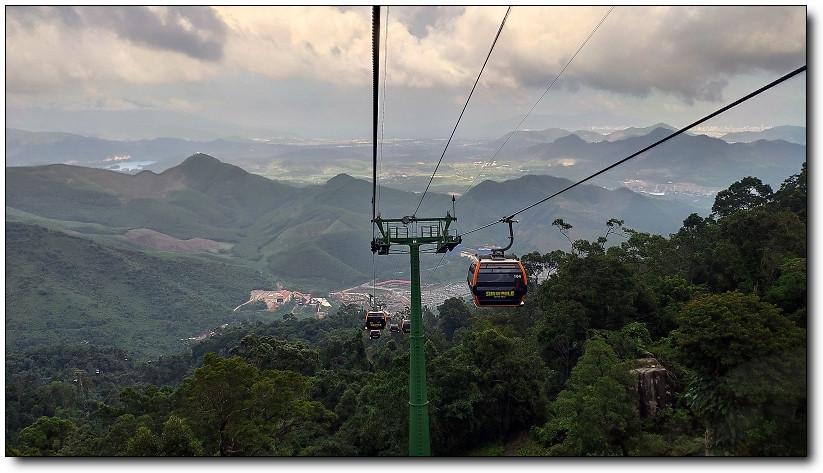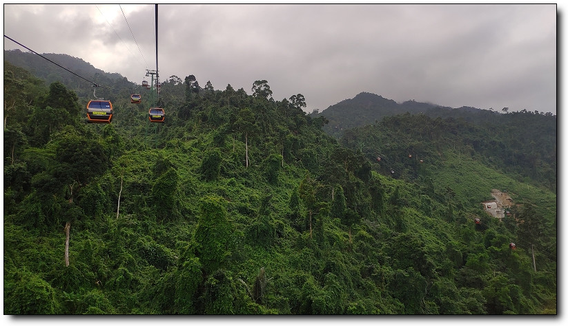 清晰看到三条缆车的位置,左边的是早上上第二山顶的缆车、中间的是上第一山顶的缆车,右边(我们乘坐)是从金桥下来的缆车。