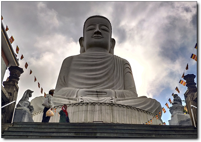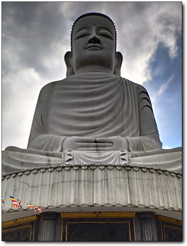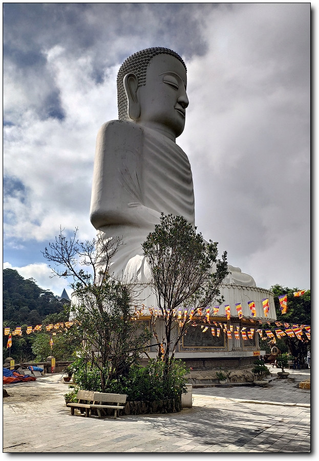 巴拿灵应寺是岘港三个灵应寺(另外两个分别是山茶半岛上的佛滩灵应寺和五行山水峰上的山水灵应寺)中海拔最高的,达到海拔1400米。寺庙前的释迦牟尼雕像高27米,宝相庄严、慈和安详、表情细腻,佛座下点缀着大片的绣球花,甚为壮观。