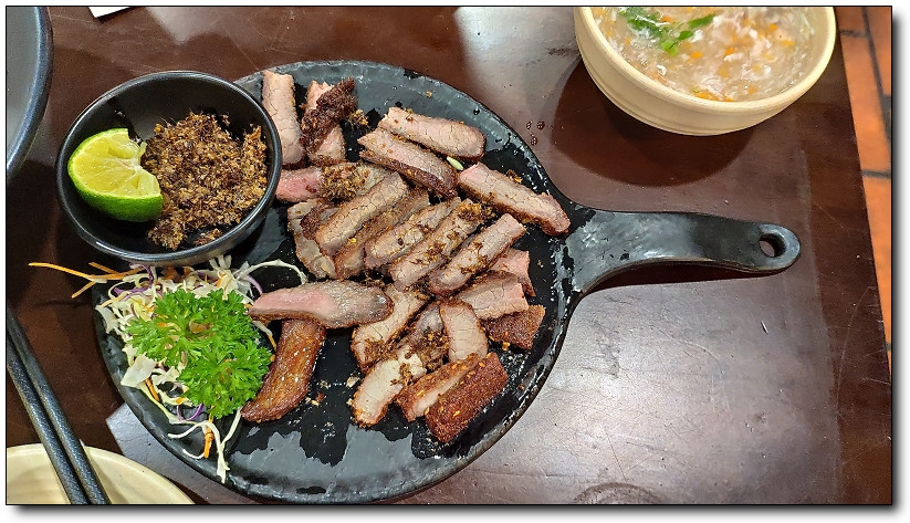 餐馆只有一道菜,就是古法煎鱼,简单的小煎锅,搭配蔬菜煎出来的无刺鱼肉,外表香脆,内里嫩滑,吃的时候配上香草、花生、细粉和酱汁等配料,味道超赞。 烤鱼有很多配菜,青柠辣椒这些必备的不说,还有米粉和炸脆饼,当然,香菜、葱这些更是少不了。还有一碗蘸酱,用虾酱为主要调料调出来的。