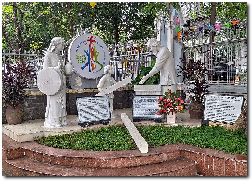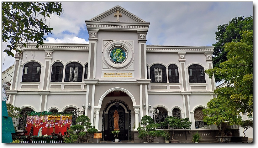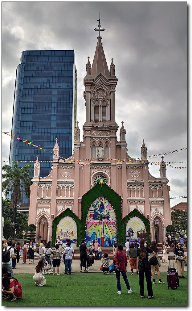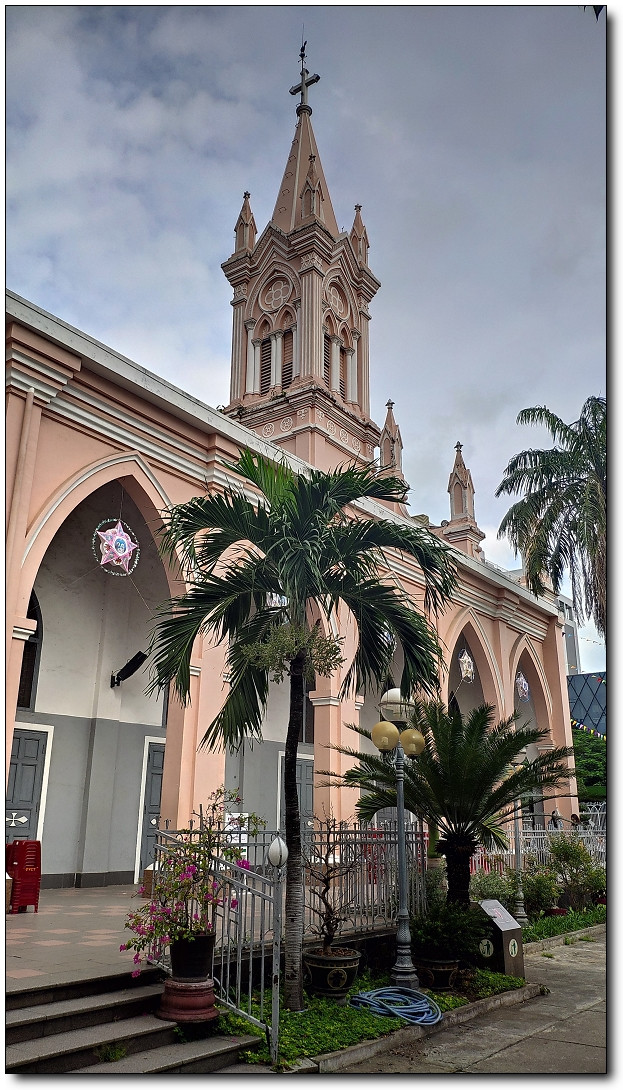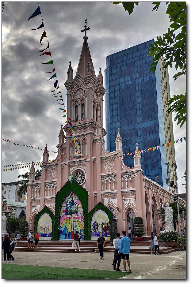 以教堂高大钟塔上的风向标为标志,又被称作雄鸡教堂,是越南中部最大的西方教堂。