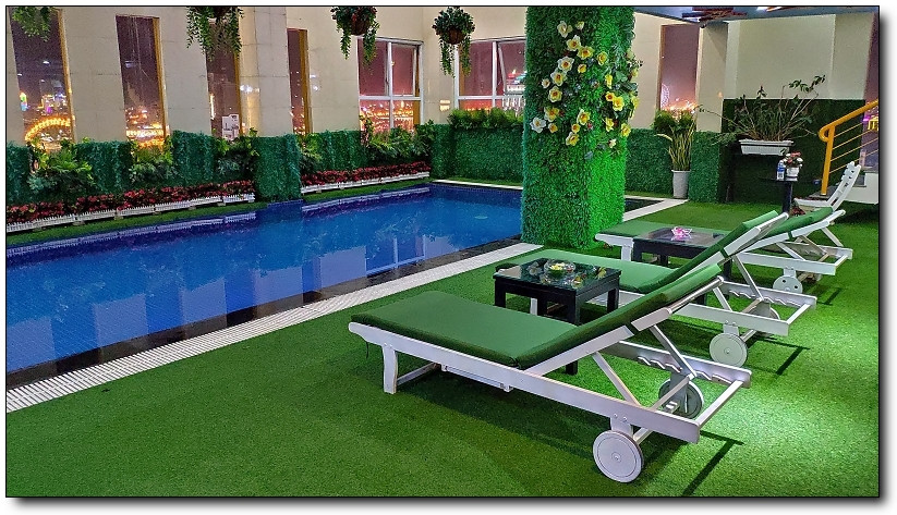 酒店顶楼是健身休闲区和泳池,还可以远眺城市四周美景。