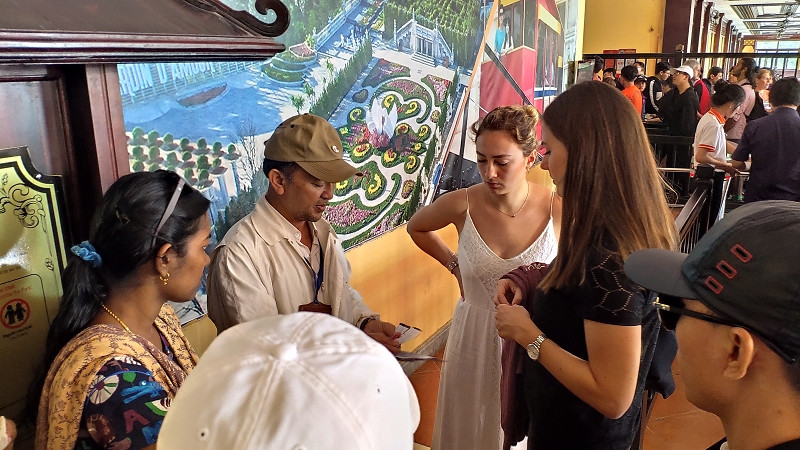 在夜市附近,无意中路过一家还在营业的旅行社,有种 “踏破铁鞋无觅处,得来全不费工夫” 的感觉,进去问有没有第二天巴拿山一日游的团,还真有,毕竟是淡季,1200K越南盾/人,到酒店接送客人、中巴小团、含午餐、英语解说,可以接受,下单付款,搞定。