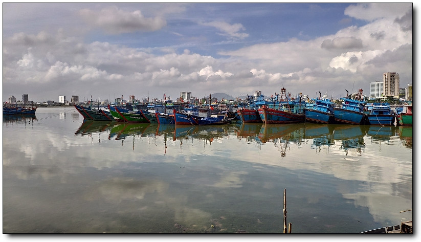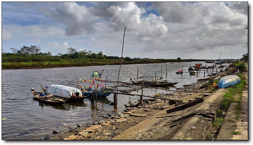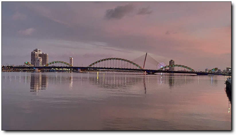 韩江上泊了不少渔船,远处的摩天轮处就是岘港亚洲公园。