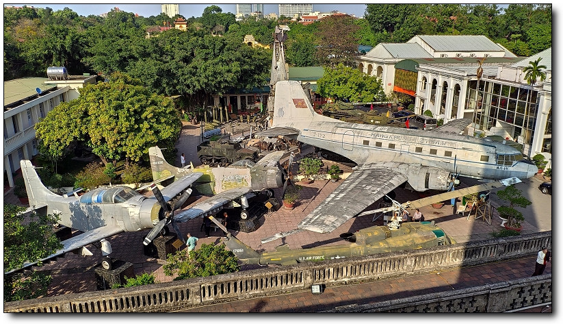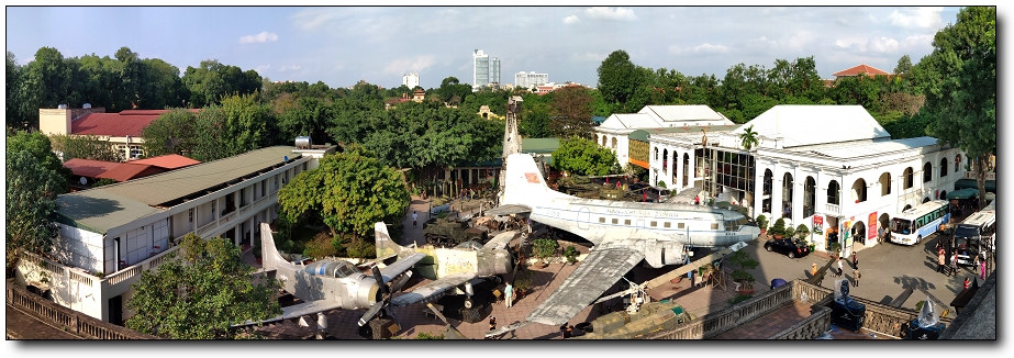 越南军事历史博物馆位于河内市中心,馆内展示的是以越南近代战争为基点的军事历史,全方位展示了越战中北越军队和美军使用过的小型喷火器、炸弹、战斗机等武器。