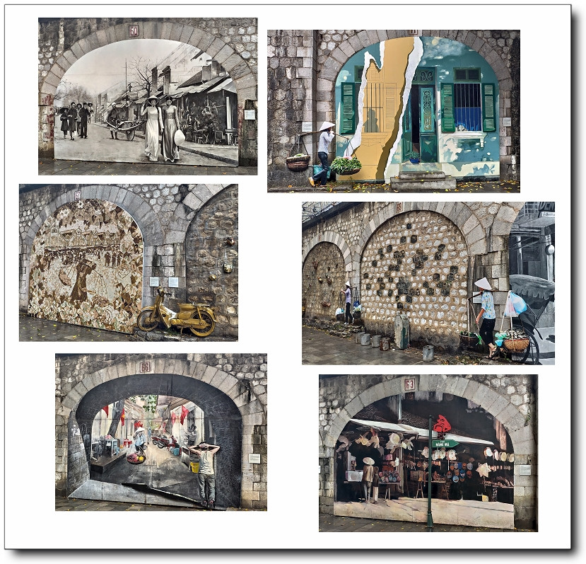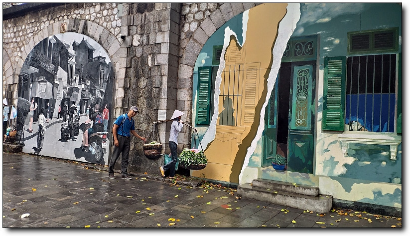 早上天气不是很好,毛毛雨,早餐后去龙编桥,途中经过一段壁画街,立体感还是挺强的,互动一下。