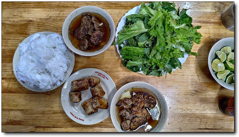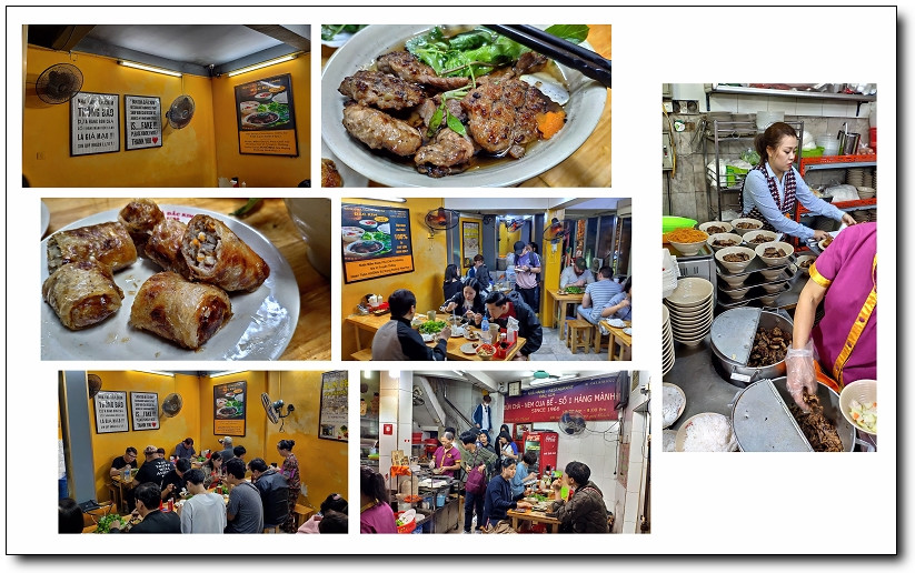 晚餐找到 Bun cha Dac Kim(店名),品尝极具越南特色的 “Bun cha ”,该食店始创于1966年,如今在河内共有五家分店(①1 Hang Manh、②67 Duong Thanh、③8a Hoang Ngoc Phach、④168 Nguyen S?n、⑤168 Nguyen Son),其中前两家已有50多年历史了,是 Bun cha 骄傲,最古老的餐厅。
