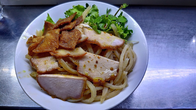 套餐形式,没有太多选择,端上来:一碗肉(有热汤)、一盘春卷、一盘米粉、一盘杂菜。要趁热将菜泡在热汤里,否则你只能生吃这些菜了,卖相不怎么样,可吃起来口感还不错。