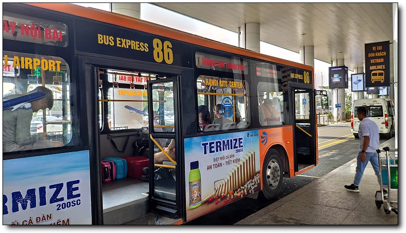一小时飞行抵达河内内排机场,换乘86路快线入市区,经济实惠。