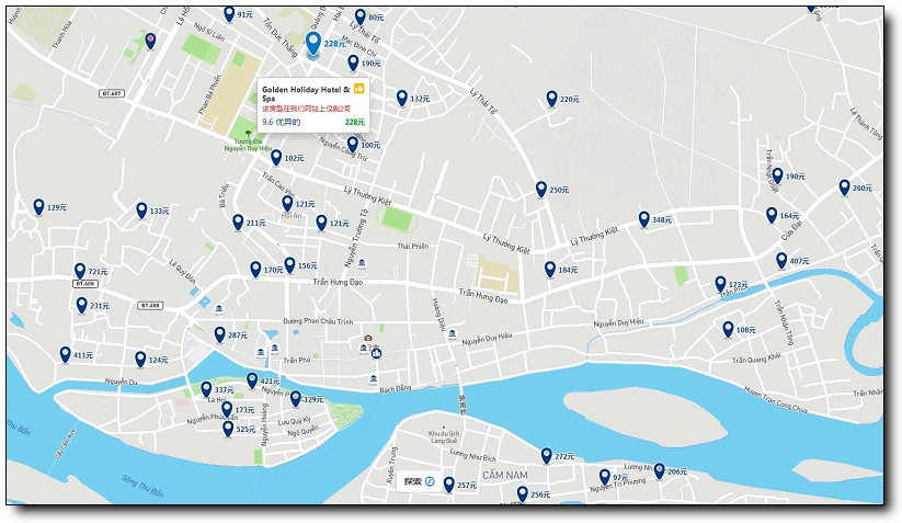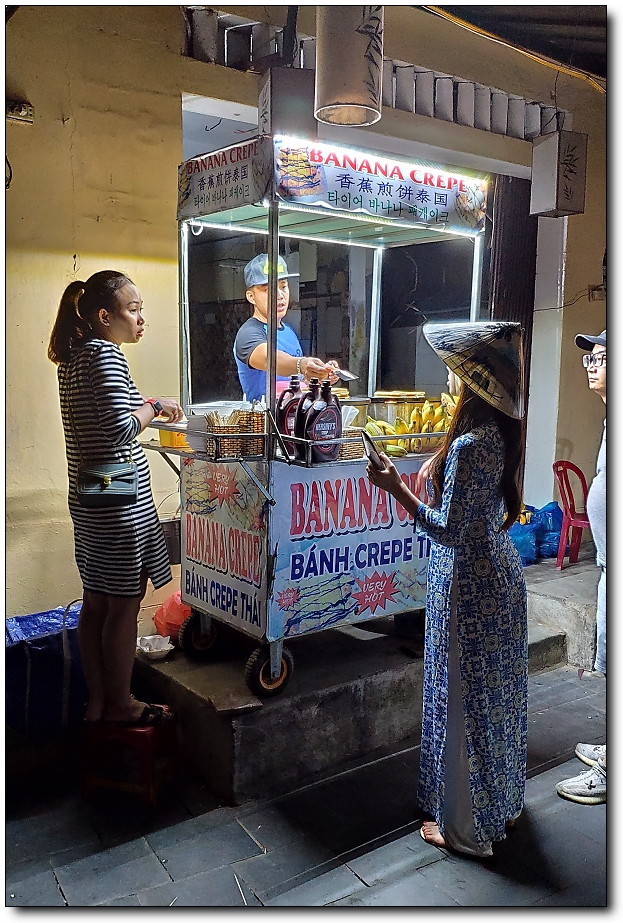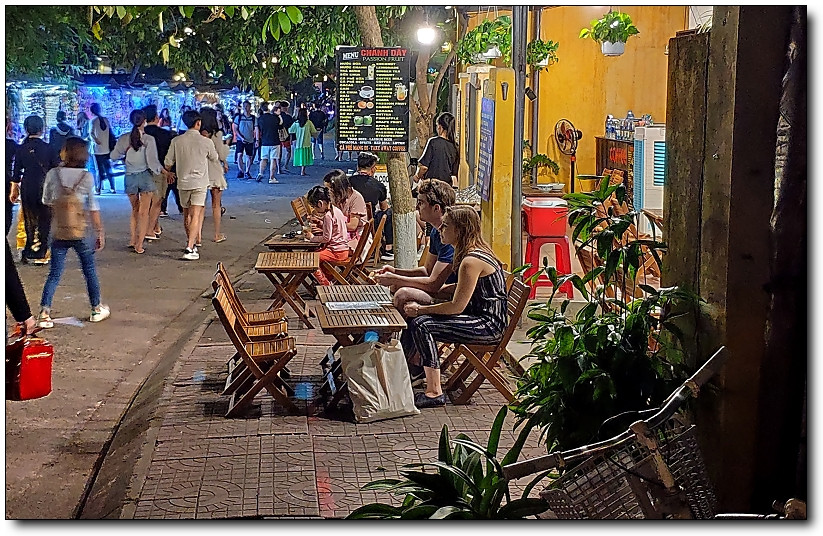半天时间过得很快,第一天不想玩得太累,游玩过程中,还留意收集回程(返岘港)的交通信息:①酒店预订包车要350K越南盾,比来的时候便宜了近150K;②古城内一家旅行社的中巴,110K越南盾/人,需要到该门店上车;③市区一家私营巴士站,无空调的巴士,20K越南盾/人,行李每件按一人算;④古城另一家旅行社,私家车一辆250K越南盾(比来的时候便宜了一半),可以到乘客的酒店接人。对比之下,选择了第四方案,下单付款。