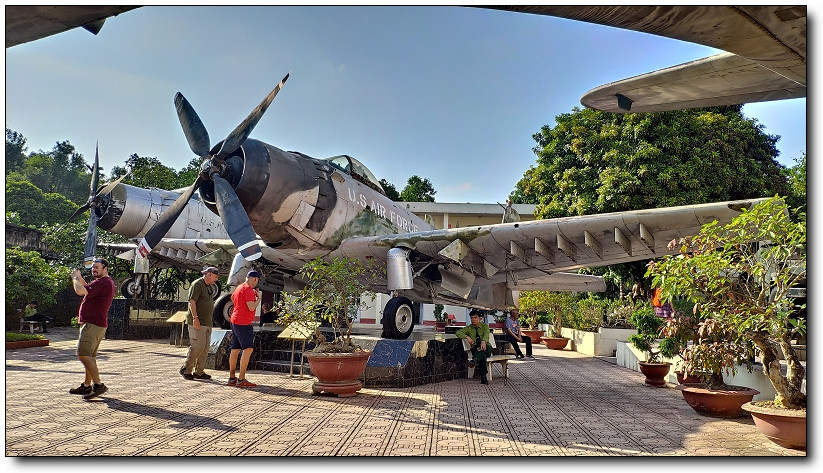 其中最特别的,就是空地中央一大堆法国制飞机残骸和美国制飞机F111的废铁之上,有一架前苏联制的米格21战斗机,寓意着奠边府战役中越南胜利击落美机的事迹。