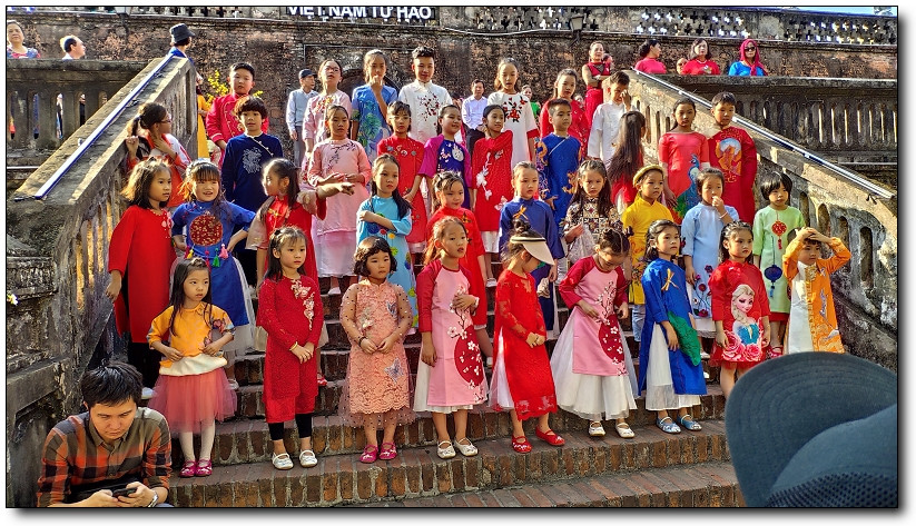 这天刚好遇到当地的电视台在拍摄爱国主义题材的节目,穿着漂亮服装的少年儿童在拍外景。