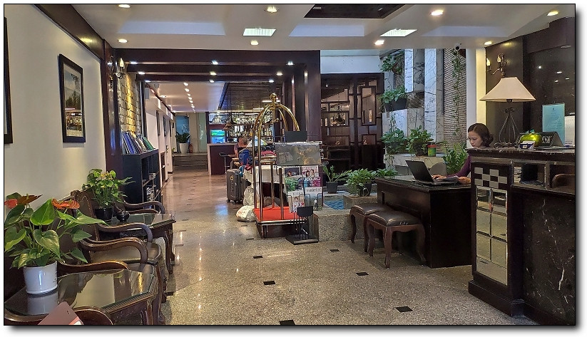 市区有点堵车,一个多小时才到下车点,再走十分钟路达到酒店 —— 河内人酒店(Hanoian Central Hotel & Spa)。