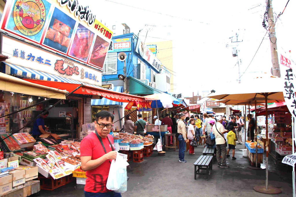 到函馆当然不能错过站前的早市海鲜盖饭喽,还有钓活鱿鱼,一般一只连钓带吃一条龙下来是1500日元左右,
