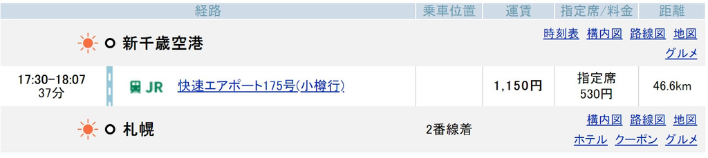 新千岁机场发17:30-札幌着18:07-札幌站附近酒店办理入住