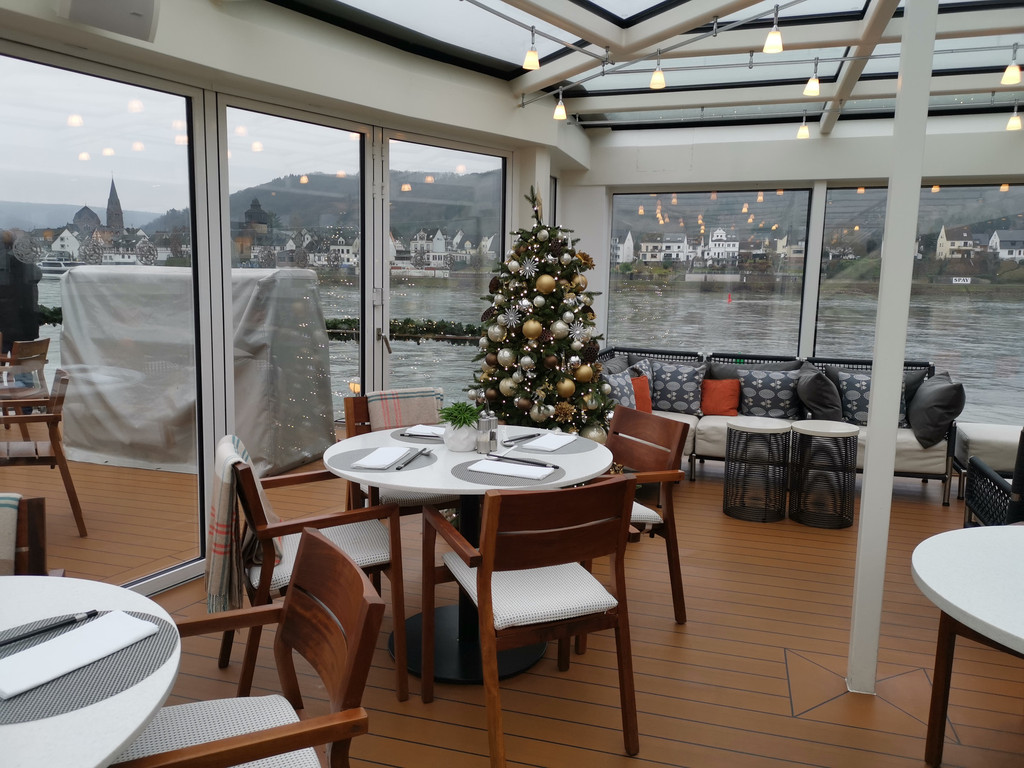五星好评给予三层酒吧。小食丰富且好吃。有酒精鸡尾酒和无酒精鸡尾酒都是又好看又好喝,坐在吧台看他们制作也是一种享受。还有各种热红酒,吕德斯海姆咖啡,制作披萨的活动。每次做,在场所有人都能拿到一份品尝。当然少不了热情的钢琴师,只要看到就抓住你歌唱一曲,现场伴奏。妈妈们都开心的合不拢嘴巴。
