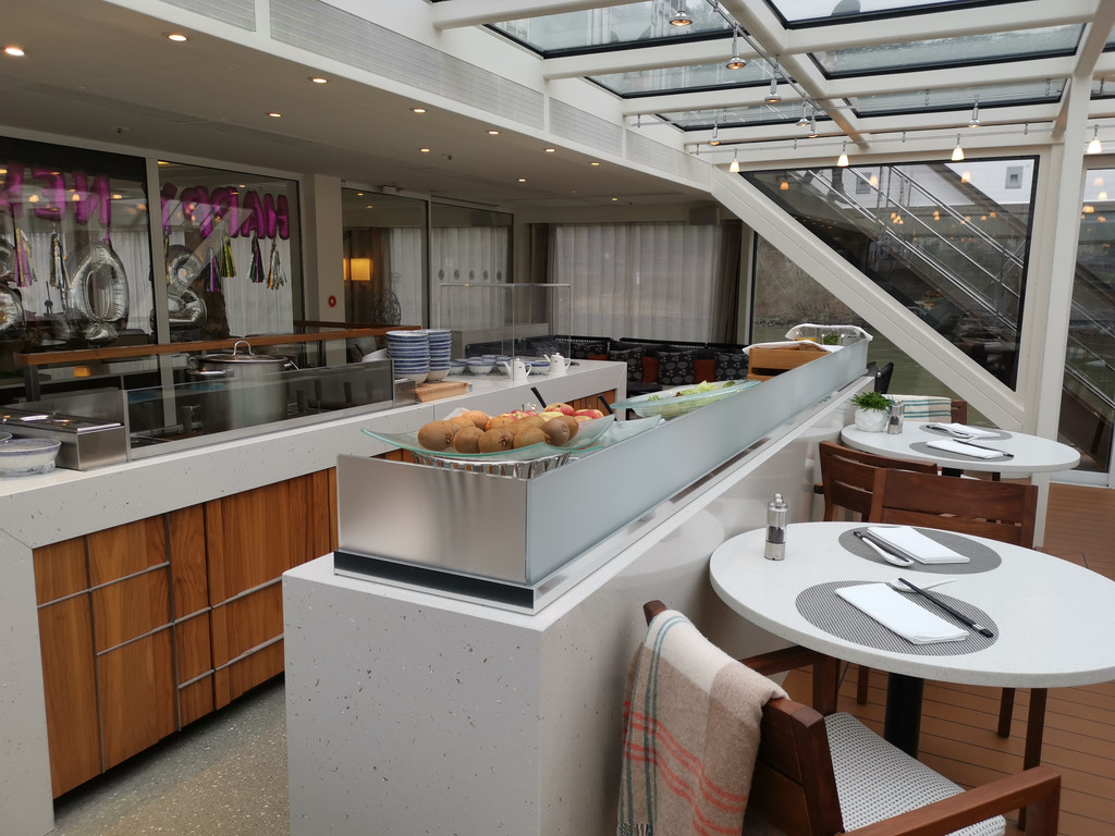 和工作人员聊天得知,维京的管理还是很人性化的。首先是人员不跟船,每次都打乱重新排,这条船是莱茵河,下条船就可能是多瑙河,身边永远有新的同事。(我自己乱猜,这个大概是防男女关系?)每个行程都有一天,可以换上便装,跟着团组进城玩耍。平时干完了手头的工作,也可以下船买买东西什么的。我心下赞叹瑞士公司的管理,只有工作人员happy了,才会把热情传递给游客。