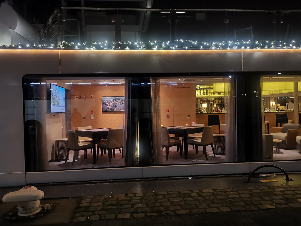 印象最深的是从斯特拉斯堡回来,船停泊在很偏僻的码头,上码头一段路没有光,天气很冷,工作人员几乎全体出动,穿着单薄的工作服,从很远的地方开始,一路打着灯照亮我们脚下的路。说不感动,那肯定是假的。