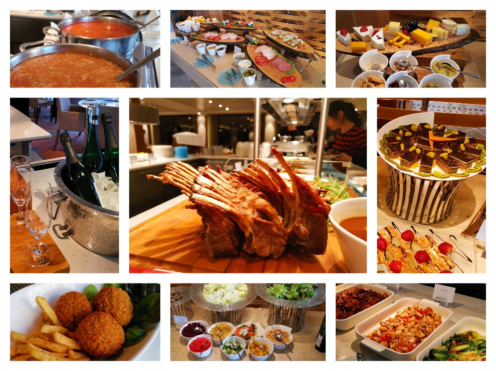 第二,船上吃的好,中餐、面吧、鸡尾酒、还有畅饮的各色佐酒。