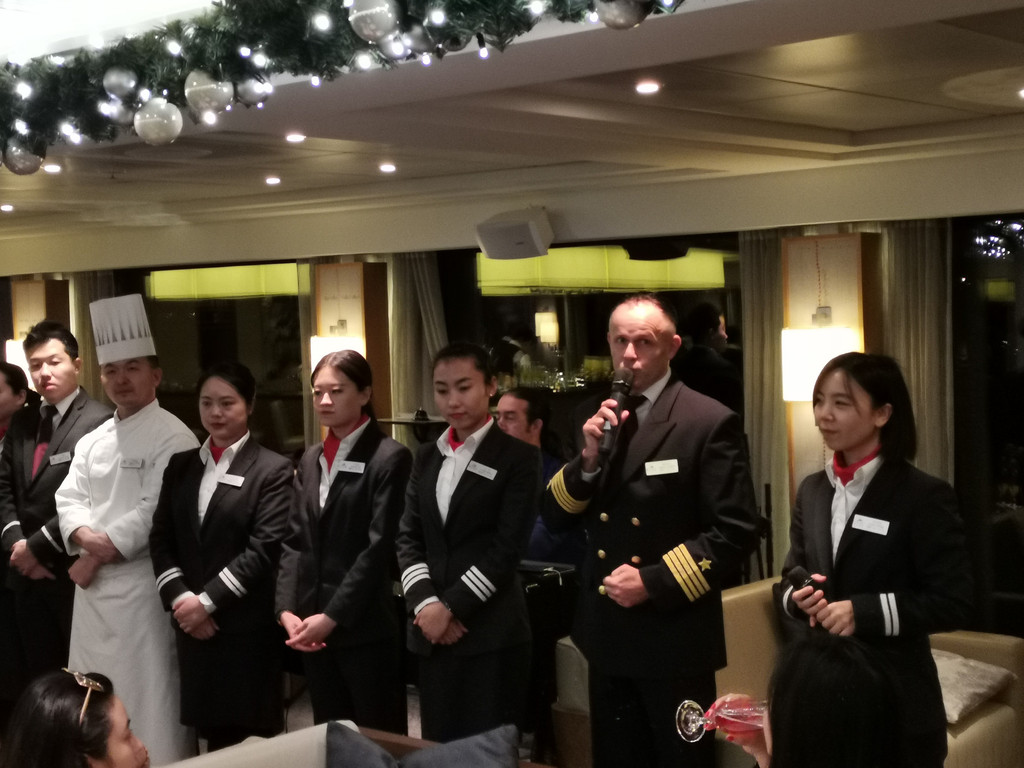 观察下来工作人员分三类:一类以船长为首负责船只运行,除了迎送晚宴,基本不打交道;一类是船上的服务人员,分餐饮和住宿,类似酒店管理,上了船,就归他们管,船上三餐,酒水饮料,客房服务,天天和他们在一起;一类是小红人,更偏向于导游,负责下船后的行程,离开船后的大巴、行程、食物、集合都由他们负责,把客人送上船后,他们就“隐退”了。