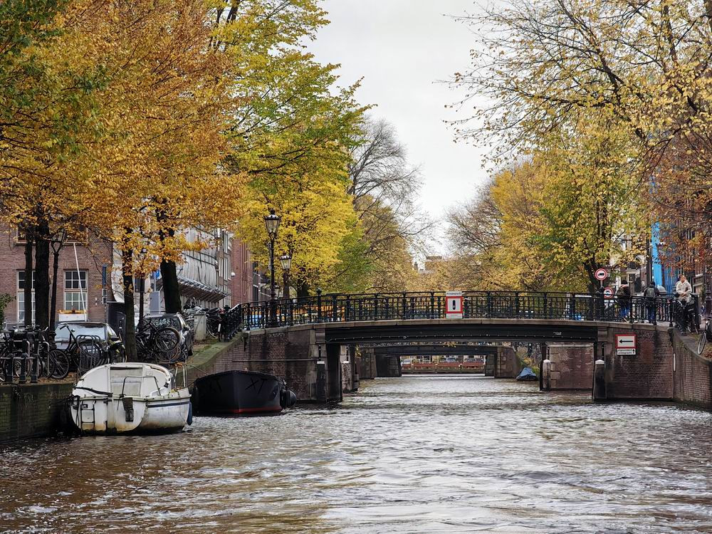 阿姆斯特丹共有165条运河, 蜿蜒串联起城市景观, 总长31英里, 共建有1281座风情各异的桥梁。照片摄于阿姆斯特丹。